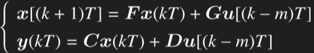 H=ss(F,G,C,D,'Ts','T','ioDelay',m)