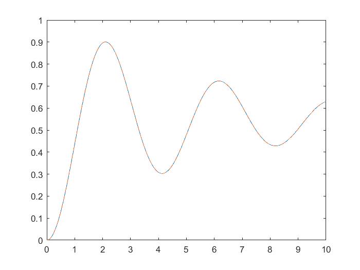 可见两条线是重合的,和使用matlab自带的 step() 函数结果一致。