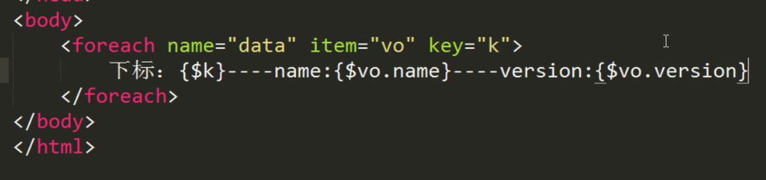 <foreach name="list" item="vo" key="k" >