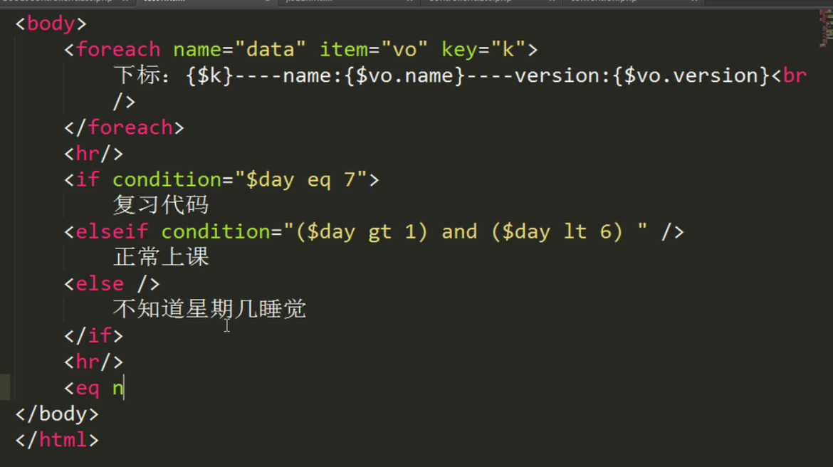 foreach标签类似与volist标签,只是更加简单,没有太多额外的属性,例如: