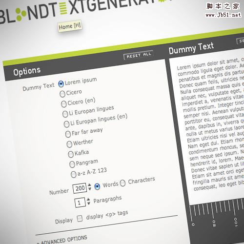 BlindTextGenerator:对设计师来说,这是一个简单又好用的文本生成小工具。内含许多种字体,可设置字符的大小,数量,样式,段落的数量及对齐方式等,还可以很方便且精确地调节文本区块的大小。