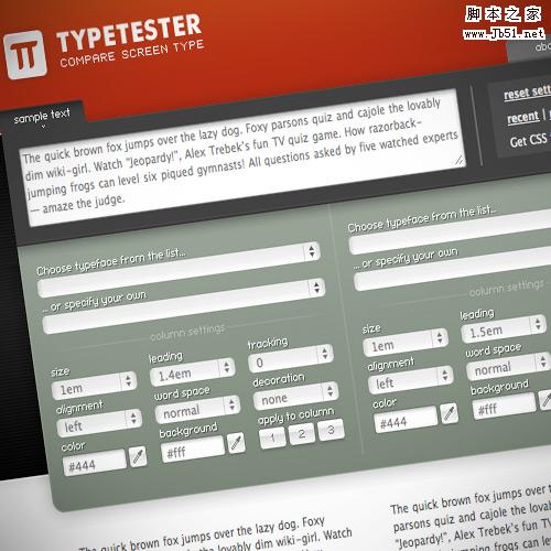 TypeTester:可以方便快捷地测试最佳字体排版的工具!提供三种方案对照,并有安全字体列表。当你找到了完美的设置方案,还可以获取相应的CSS。
