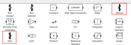 Mux,Demux,分别是将信号汇合和拆分的工具。和Bus Creator及Bus
