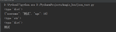 第三:将json数据转换成python数据后,一般会得到一个dict类型的变量,此时内部的数据都是unicode编码,所以中文的显示看着很痛苦,但是对于dict得到每个key的value后,中文就能正常显示了,如下所示: