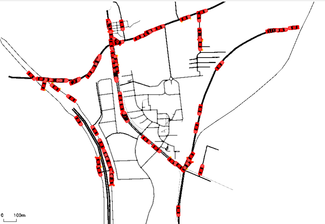 edit->edit Visualisation->Vehicles->Show As->选择"Simple shapes"就能看见车辆的形状。为了更加明显,在color中可以选择红色。 同时选中Draw with constant size when zoomed out 和 Show route index,选中红色,可以让车辆看得更加明显。效果图如下所示: