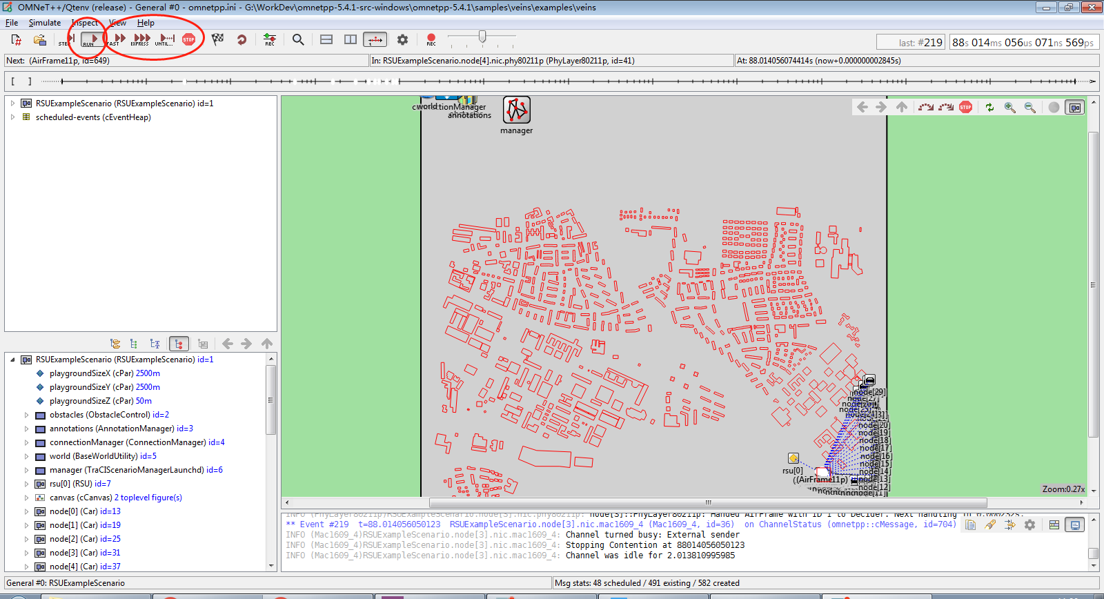 (5)这里我用的是omnetpp-5.4.1、sumo-0.30.0、veins-4.7.1