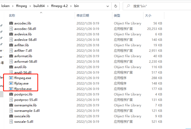 实际上,要在CMD环境运行 ffmpeg.exe ,还需拷贝6个dll库到 build64/ffmpeg-4.2/bin
