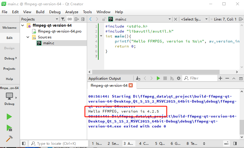 printf("Hello FFMPEG, version is %sn", av_version_info());