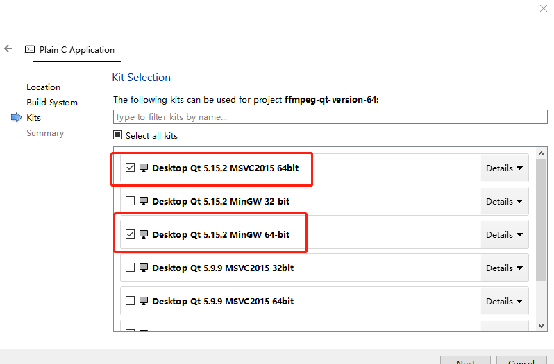 2,勾选 64 位编译环境 kit 。