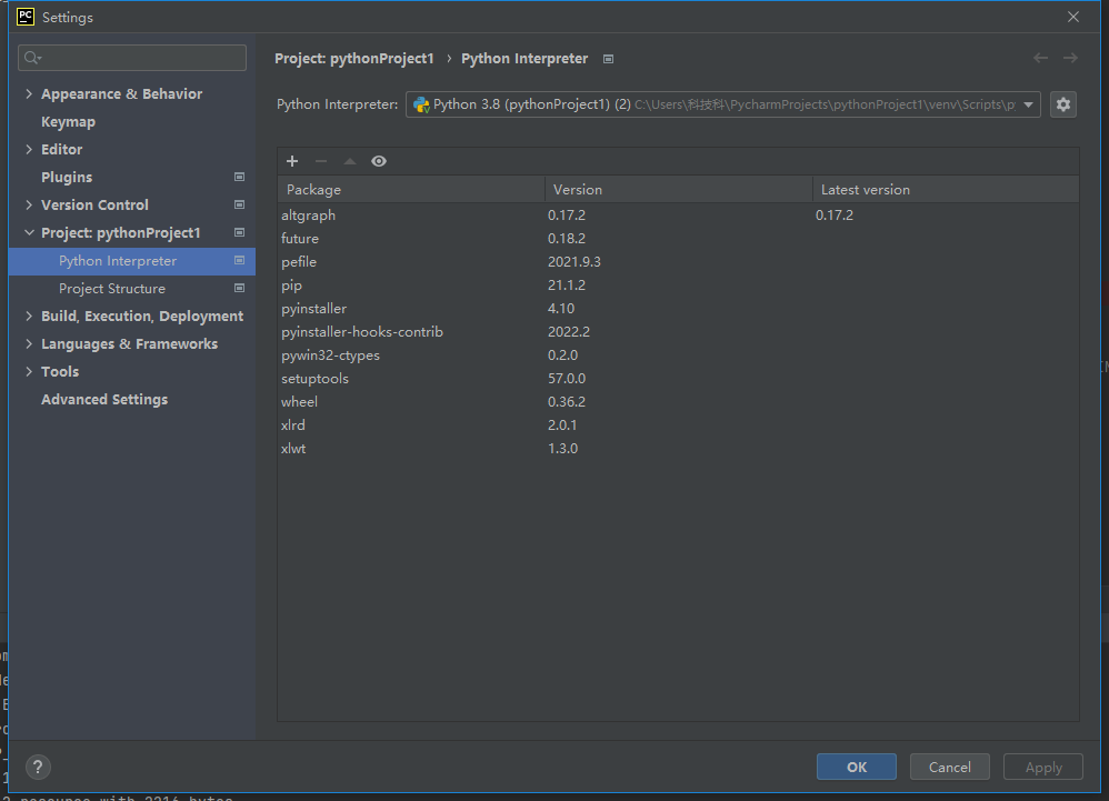开发ide用的pycharm,并在pycharm里基于系统的conda创建了项目的虚拟环境,用到的包也很简单:xlrd,xlwt,都是直接在pycharm里install的。