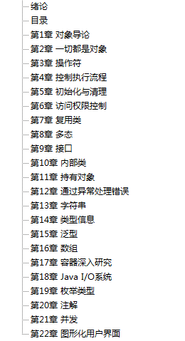 果然,如果你知道自己要去哪儿,全世界都会为你让路。很幸运,7月-9月公司安排我们先在工厂学习,而这段时间除了学习一些车机组装、锡焊和生产车间的知识外,其他时间就是很闲的,这正是我阅读《Java编程思想》的最佳时间。通过看此书的目录,我知道了要想一下子看完这八百多页,是有点“眼大肚皮小,何怕吃不饱”的。于是定下个目标,在工厂学习这两三个月的时间先看完面向对象前面的知识(也就是6章及以前),等到工作岗位后再学习后面的内容(7章及以后就是关于继承、多态等面向对象的内容了)