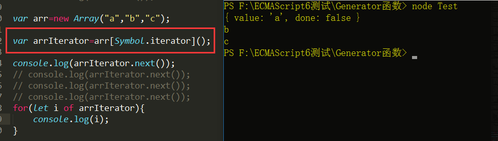 /** * * @authors Soul (2461358597@qq.com) * @date 2016-06-01 15:34:02 * @version 0.0.1 * @description 给一般对象部署迭代器对象 */ //迭代器对象 const soul_iterator={ soul_index:-1, [Symbol.iterator](){ return this; }, next(){ var arr=this.soul_exchange(); this.soul_index++; return this.soul_index>=arr.length?{value:undefined,done:true}:{value:this[arr[this.soul_index]],done:false}; }, soul_exchange(){ var array=[];//用来存放数字索引和属性名的键值对 var j=0;//用作array数组的索引值 for(let i in this){ if(i!="soul_index"&&i!="next"&&i!="soul_exchange") array[j++]=i; } // console.log(array); return array; } }; //测试对象 function objTest(){} objTest.prototype={ name:"soul", age:21 }; //部署迭代器对象 objTest.prototype.__proto__=soul_iterator; //创建测试对象的实例 var newObj=new objTest(); // for...of 测试 for(let i of newObj){ console.log(i); } //next()方法测试 // console.log(newObj.next()); // console.log(newObj.next()); // console.log(newObj.next()); // console.log(newObj.next());
