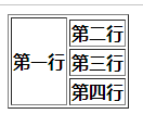 <th rowspan="4">第一行</th>//合并三面的三行,会把下面三行的位置占据,下面的三行将会被挤到右边去