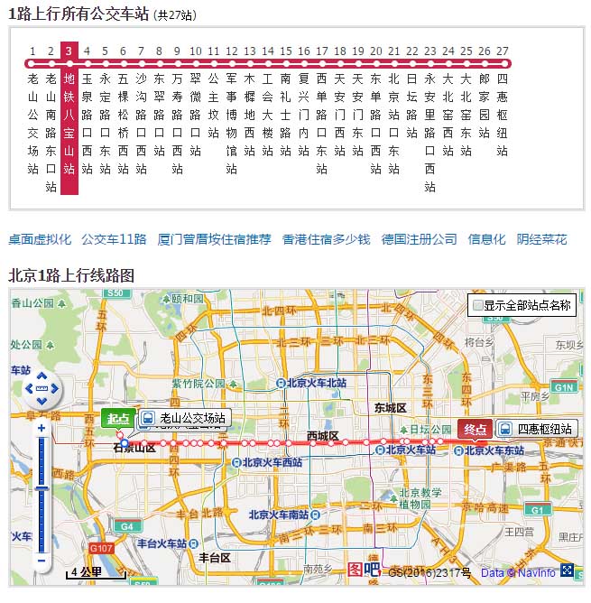 首先,爬取研究城市的所有公交和地铁线路名称,即XX路,地铁X号线。可以通过图吧公交、公交网、8684、本地宝等网站获取,该类网站提供了按数字和字母划分类别的公交线路名称。Python写个简单的爬虫就能采集,可参看WenWu_Both的文章,博主详细介绍了如何利用python爬取8684上某城市所有的公交站点数据。该博主采集了站点详细的信息,包括,但是缺少了公交站点的坐标、公交线路坐标数据。这就让人抓狂了,没有空间坐标怎么落图,怎么分析,所以,本文重点介绍的是站点坐标、线路的获取。