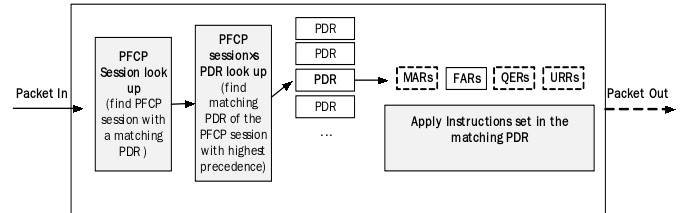 - 如果匹配成功,则查找 PDR 关联的 FAR 转发操作