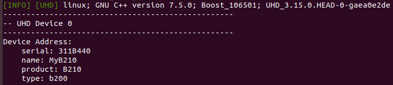 这一步之后 usrp 的驱动就安装好了,可以插上USRP B210 执行以下命令验证一下