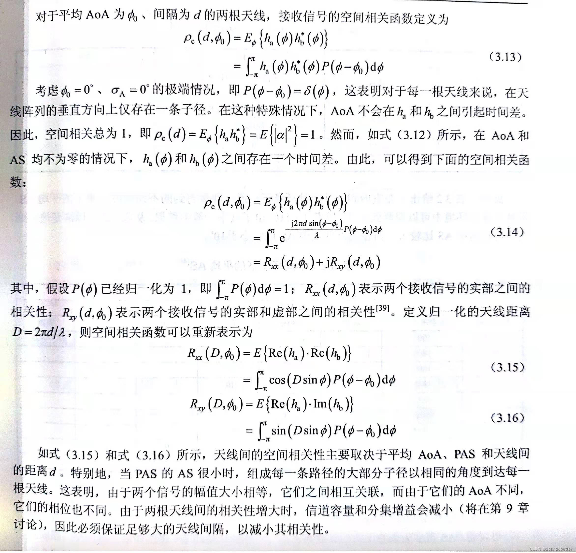 总的来说 ,两个天线单元的信道系数在时域和空域是相关的.空间相关性是指空间上分开的两个天线单元接收同源信号的互相关.
