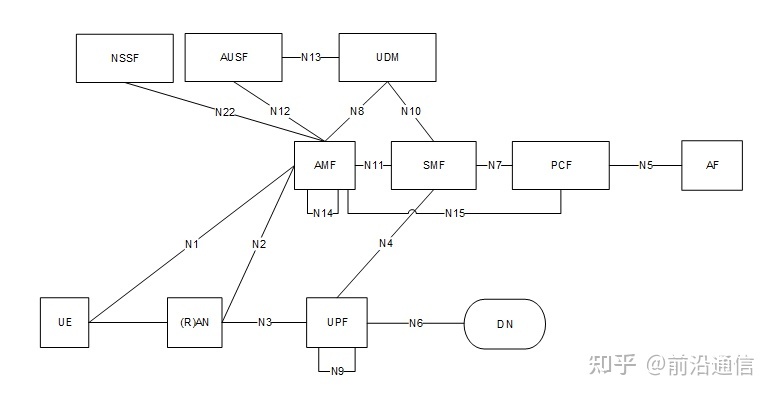 5G核心网主要包括的网元有AMF、SMF和UPF,目前UPF一般放在需求方,及在地市或县城,AMF和SMF一般集中在省公司。各网元之间的接口如下: