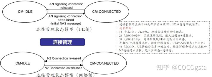 5G核心网定义了两种连接管理(CM)状态,用于反映UE与网络侧的连接状态: