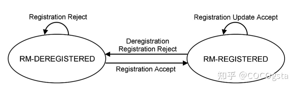 5G核心网定义了两种注册管理(RM)状态,用于反映UE与网络侧的注册状态: