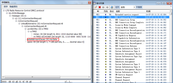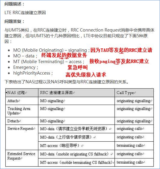 - dedicatedInfoNAS携带NAS消息,包含ATTACH REQUEST,TAU REQUEST,SERVICE REQUEST等消息。