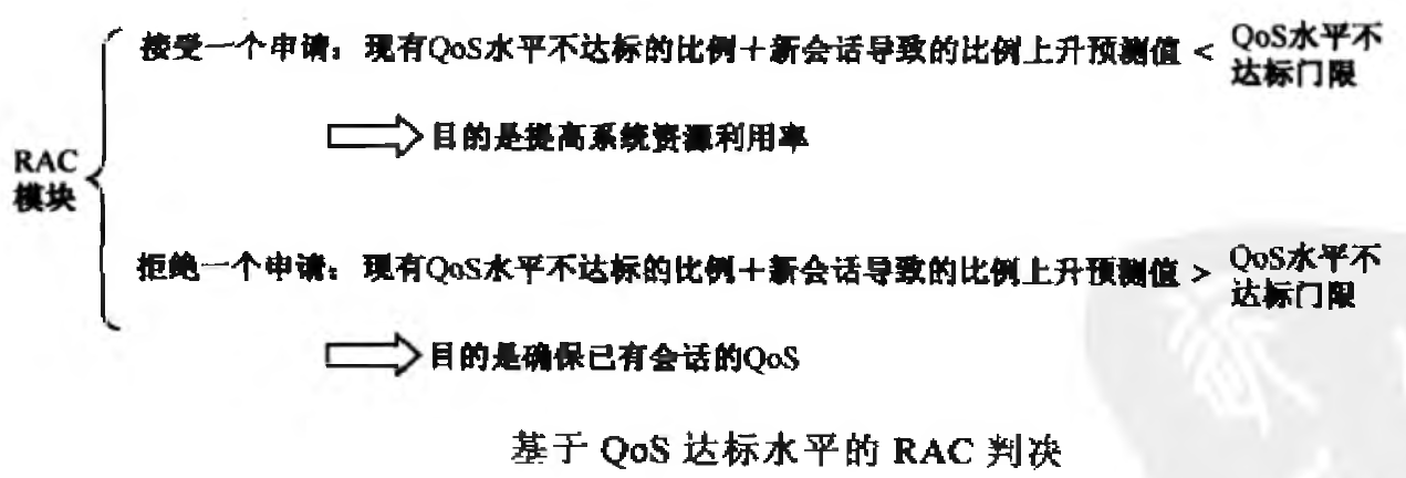 RAC模块输入的是资源利用状况、QoS现状和新要求,输出的是"Yes"(接收)或者"No"(拒绝)。
