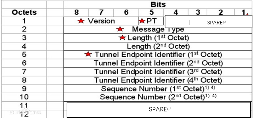 T:TEID标志位(TEID flag),长度1位,标记TEID字段是否存在,有则值为1,无则值为0,只有Echo Request和Echo Response消息不携带TEID字段;