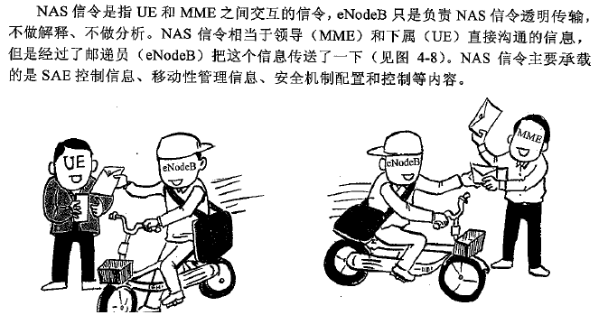 NAS负责UE和MME之间的信令交换,eNodeB只起到传输作用。
