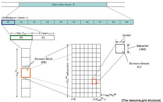 最基本的单位是RE,对应一个子载波
