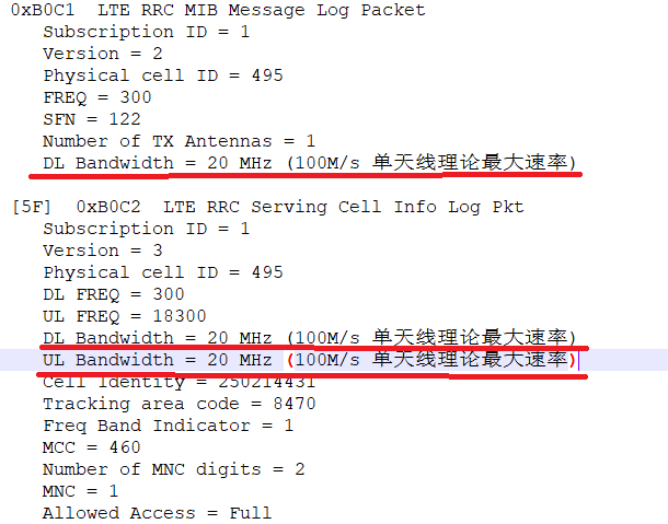 下行带宽参数由RRC配置,通过MIB消息的dl-Bandwidth发送到终端。