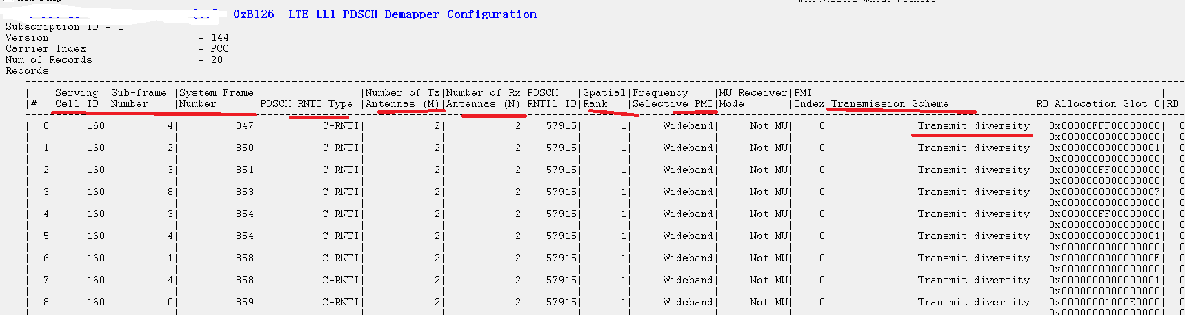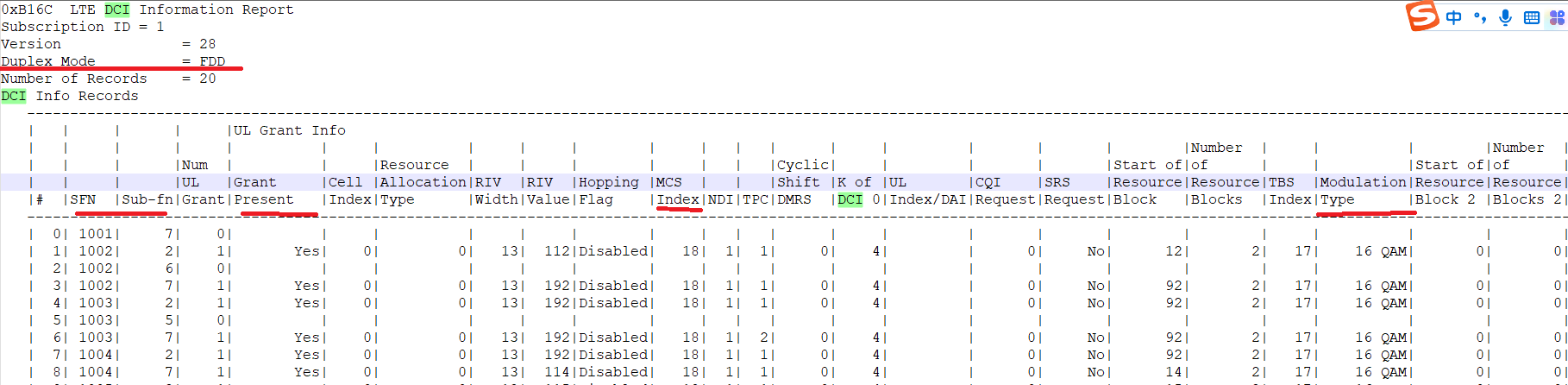 | 比如1个子帧14 symbols,CFI 有1,2,3,4 | 上下行:RB 分配情况,调制解调方式 控制信息 UL DL grants, SRS,HARQ ID,Rnti Type ,DCI Type | |
