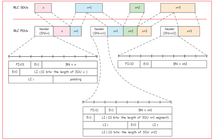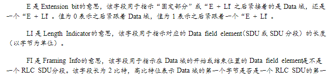 一个RLC PDU可以由下面的段组成: