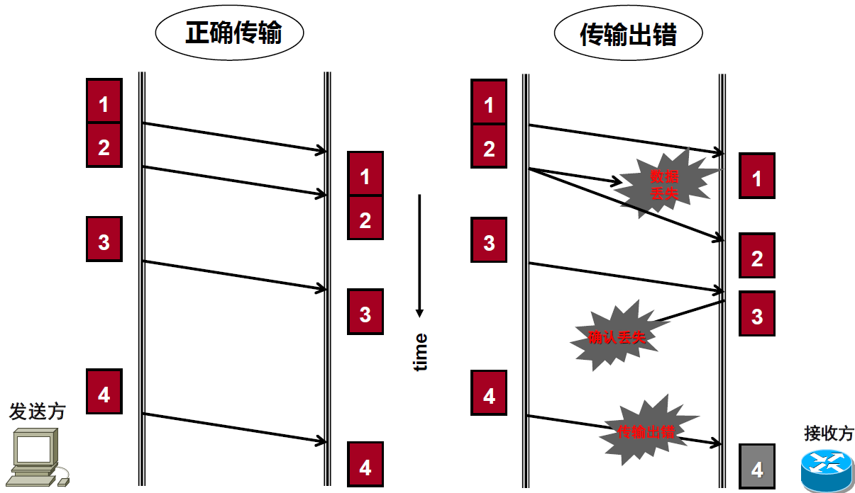 - (2)数据丢失,超时重发:这个对应的是发送数据和确认丢失的情况。