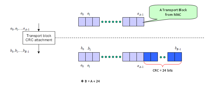 以下是来自36.212的一张图,这个过程的全部目的是“将一个传输块(从MAC)转换成一系列要传输的比特流数据。