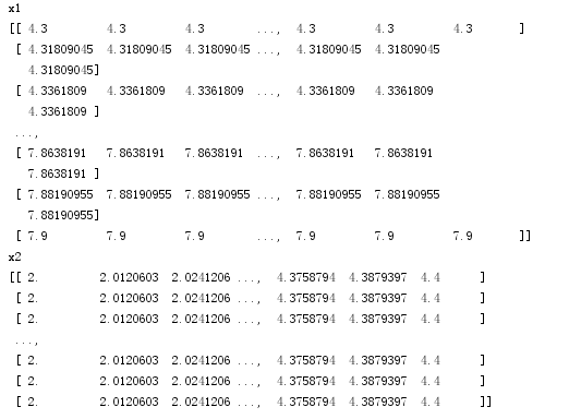 因此这里x1, x2 = np.mgrid[x1_min:x1_max:200j, x2_min:x2_max:200j]后的结果为: