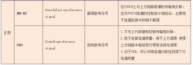 上行:只定义了一种物理信号:参考信号(RS)。