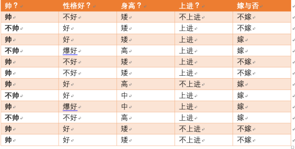 根据公式我们可以知道,长相可以取帅与不帅俩种