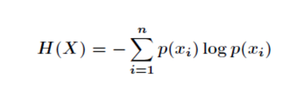 我们首先知道信息熵是考虑该随机变量的所有可能取值,即所有可能发生事件所带来的信息量的期望。公式如下: