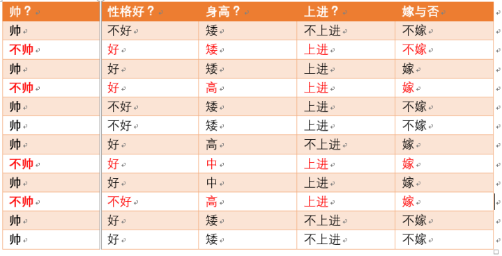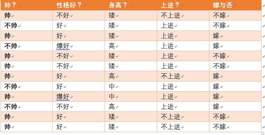 根据公式我们可以知道,长相可以取帅与不帅俩种