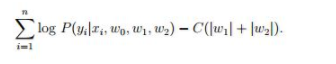你正在使用带有 L1 正则化的 logistic 回归,其中 C 是正则化参数,w1 和 w2 是 x1 和 x2 的系数。