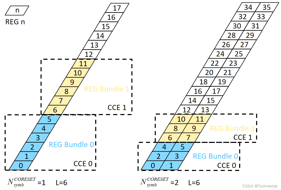 一个REG相当于频域上一个RB、时域上一个OFDM符号。