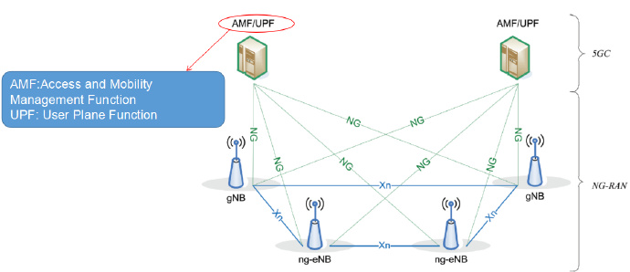 - ng-eNB(“enhanced 4G base station”, 提供E-UTRA接入)