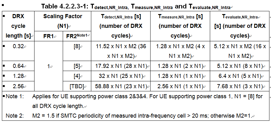 在检测到一个同频邻区,但还未重选到该小区,如果Treselection = 0,滤波器应该保证UE在Tevaluate,NR_intra时间内评估出该同频满足重选准则,Tevaluate,NR_intra在表4.2.2.3-1定义。