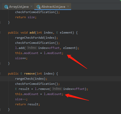 具体分析下:ArrayList继承AbstractList,在抽象类AbstractList里有定义了modcount变量,用来记录数组变量被修改的次数