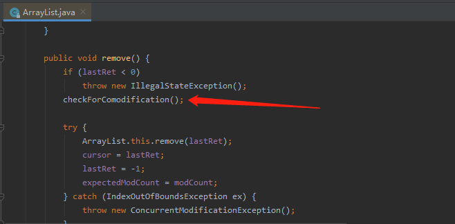 导致expectedModCount != modCount,抛出异常。来看下源码