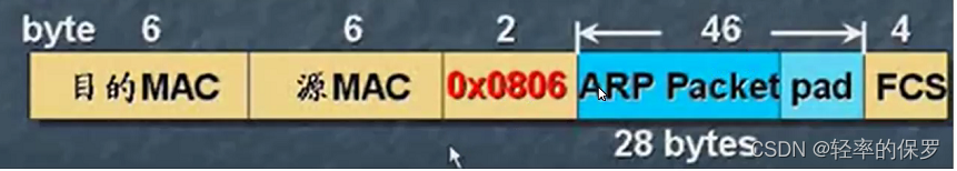- 以太网帧类型表示的是后面的数据类型,ARP请求和ARP应答这个值为0x0806
