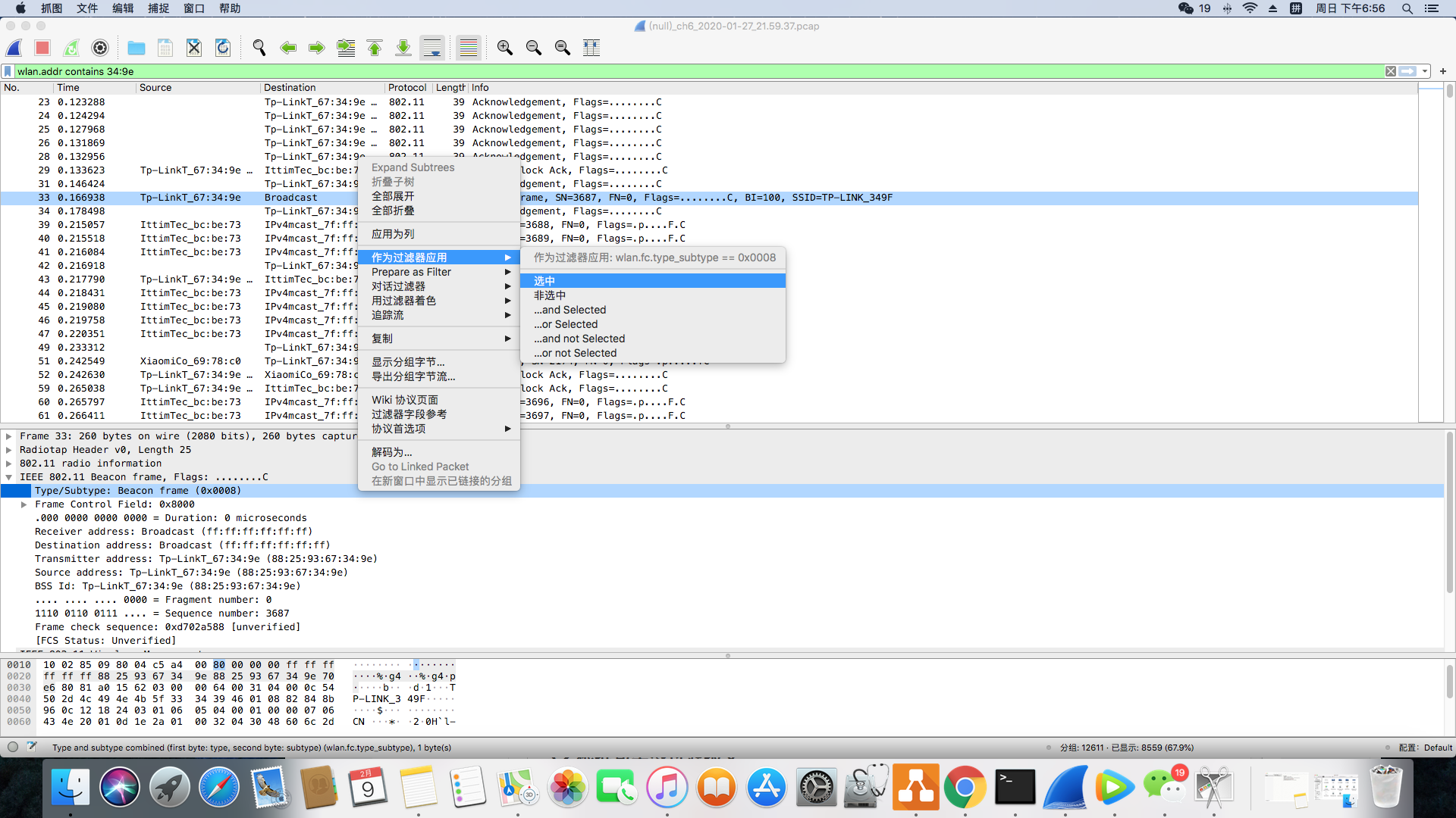 以上就是友好钢笔最近收集整理的关于在MAC OS上进行Wi-Fi抓包和空中包分析一. 背景二. MAC系统抓包三. Wireshark分析抓包四. 结束语的全部内容,更多相关在MAC内容请搜索靠谱客的其他文章。