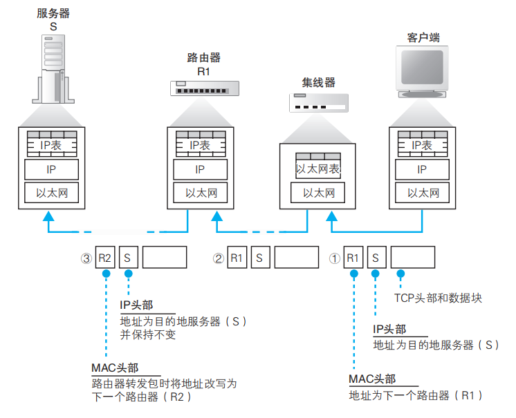 (2)子网中的以太网协议将包传输到下一个转发设备