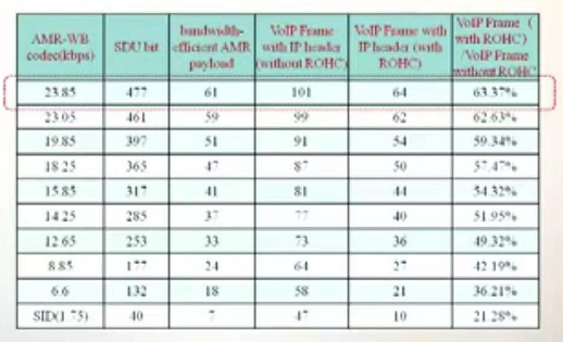 不同的语音编码,因此传输的语音数据的长度是不同的,从477-49bits。因此传输的语音数据的长度越短,头部压缩带来的效率的提升就越明显。