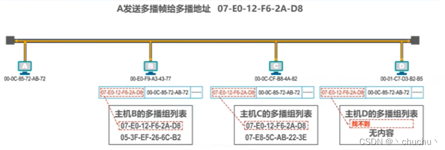 当接受到一个多播帧后,对照这个列表就知道这个是否匹配